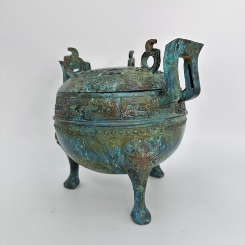 Trípode de bronce Ding, tapa de caldero, artesanía de Metal antiguo que sirve ambos utensilios de cocina, recipiente ritual para sacrificios, chapado náutico